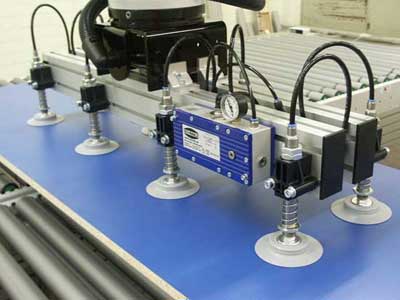 • Mediante el uso de ventosas, se pueden sujetar o transportar elementos. Así se da en pinzas de robots o manipuladores cartesianos. O bien en el utillaje aeronáutico.